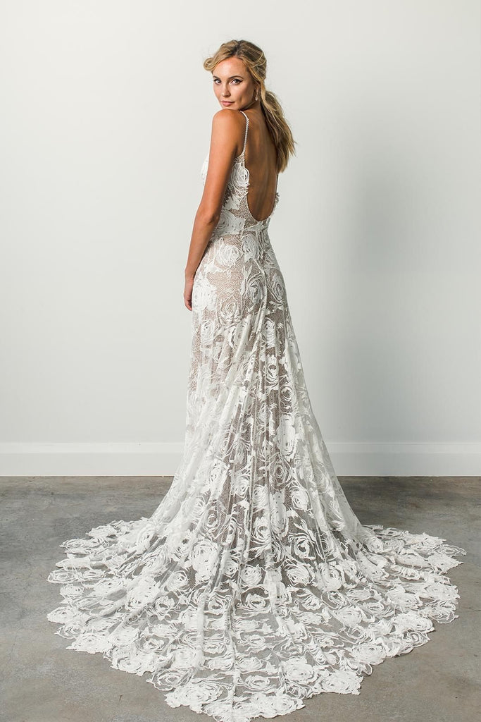 This is a gorgeous spaghetti belt strapless lace appliqué wedding dress