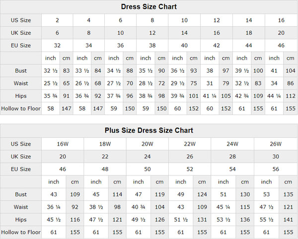 When you choose "Customer size", please leave us a message about your bust, waist, hips, hollow to floor with bare foot, extra heels and other necessary measurements.